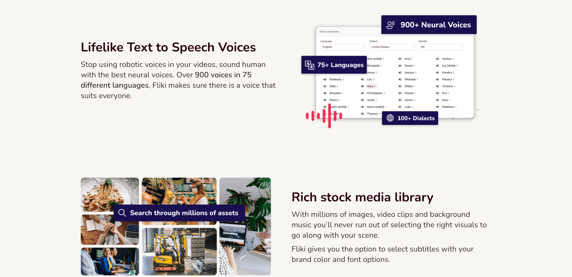 Fliki helps you create engaging videos using text prompts in the matter of minutes, thanks to AI and artificial voice synthesis