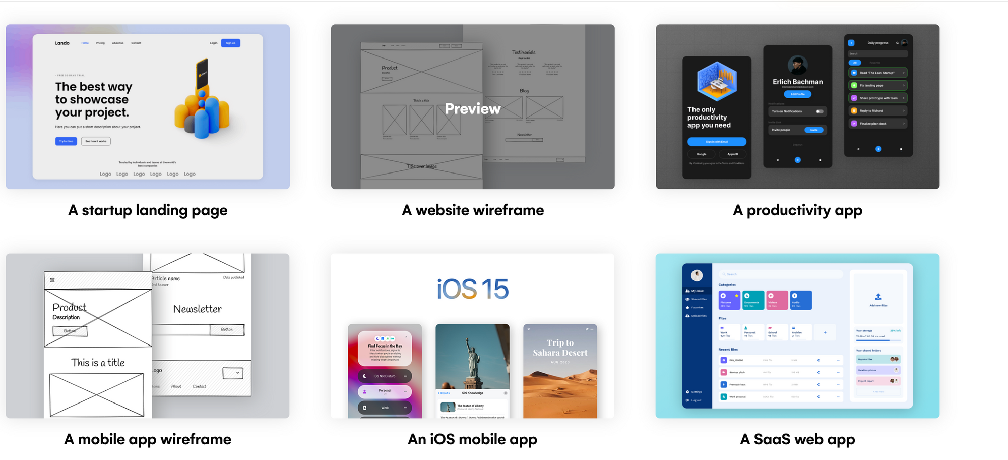 - Great for mobile apps, wireframes, mockups, productivity apps, and website landing pages